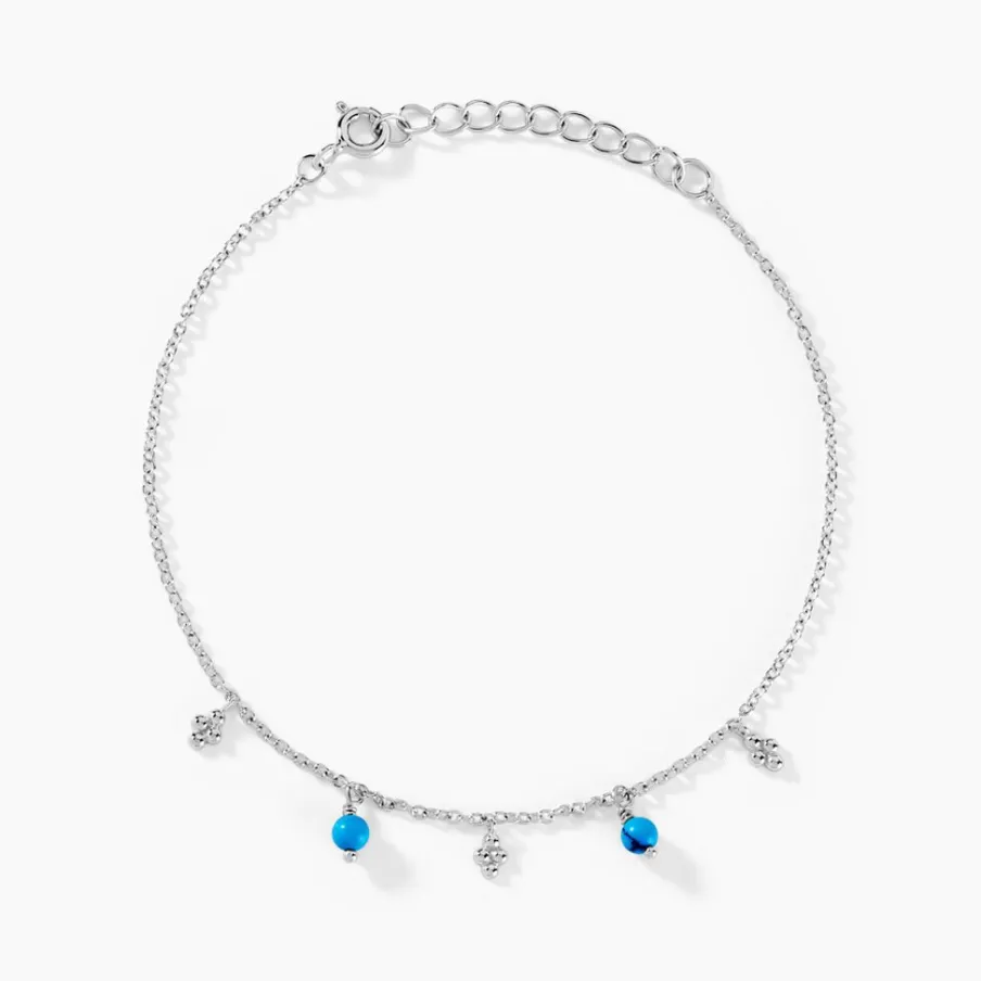 Bracelet Argent Blanc 925/1000 Boules Turquoise Et Croix Maille Jaseron 17+3cm