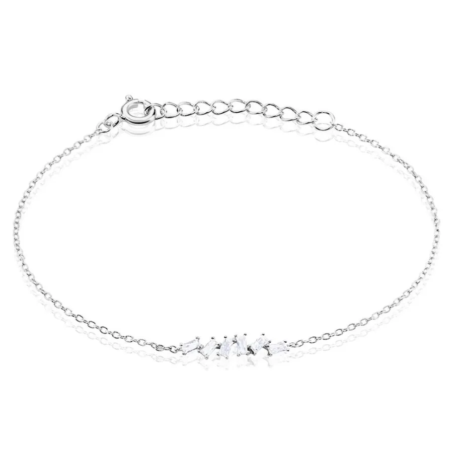 Bracelet Argent 925/1000 Oxydes De Zirconium Blancs Tailles Baguettes Désorganisés Maille Forçat 19cm