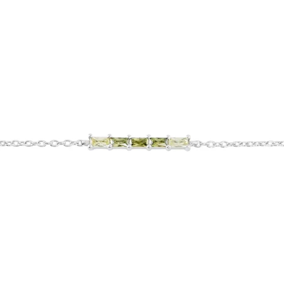 Bracelet Argent 925/1000 Barrette Baguettes Oxydes De Zirconium Nuances Vert Maille Forçat 19cm