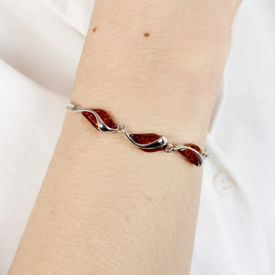Bracelet Argent Blanc 925/1000 Eve-liseae’ Ambre Motifs Ovales Triples 18+3cm