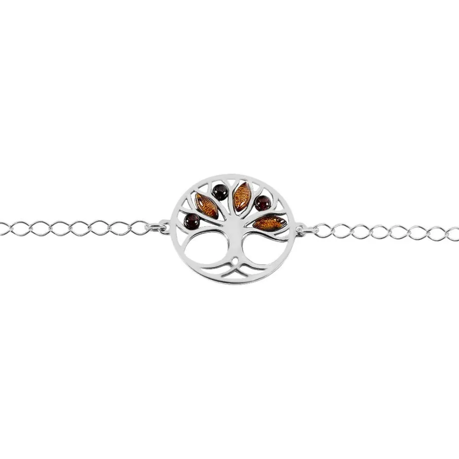 Bracelet Argent Blanc 925/1000 Arbre De Vie Ambre Cognac Et Marron 20cm