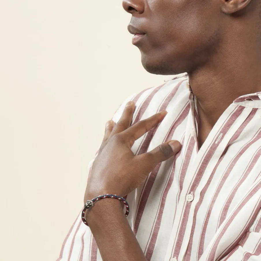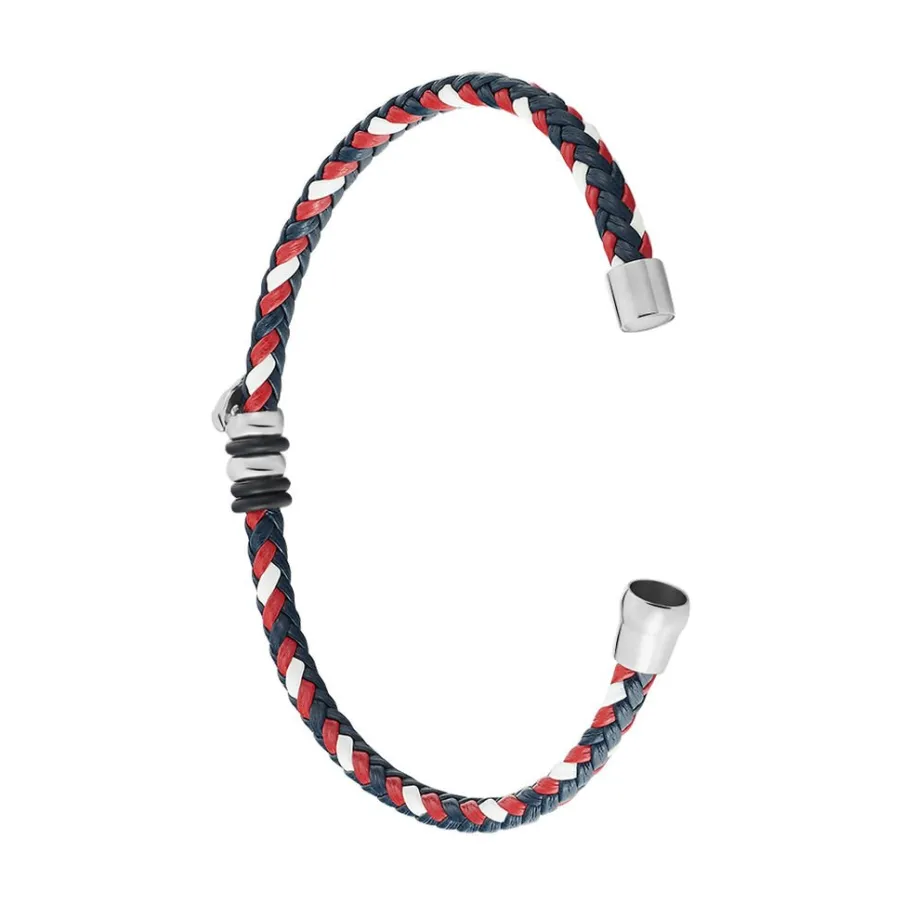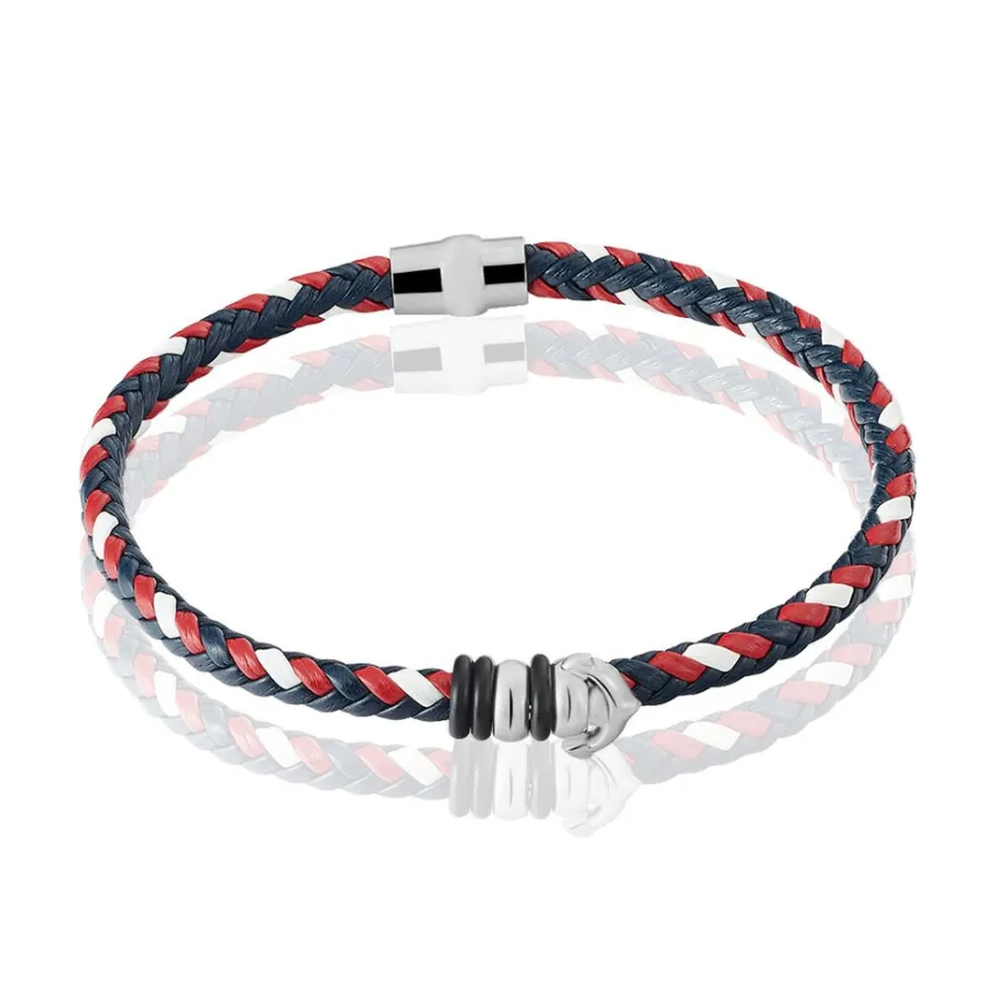Bracelet Acier Inoxydable Blanc Tresse Synthetique Blanche Noire Et Rouge 21cm