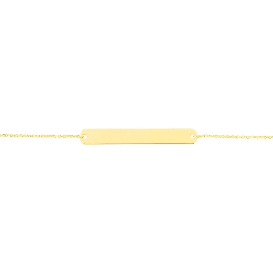 Bracelet Or Jaune 375/1000 Plaque Rectangle Gravable Maille Jaseron 18cm