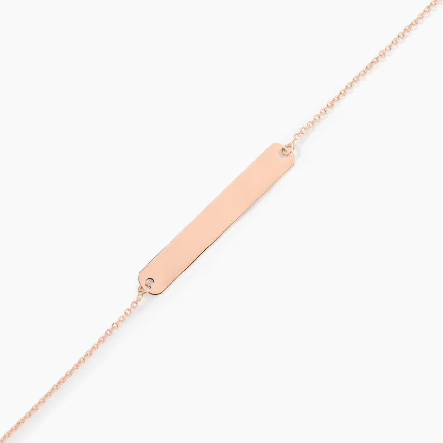 Bracelet Or Rose 375/1000 Plaque Rectangle Gravable Maille Jaseron 18cm