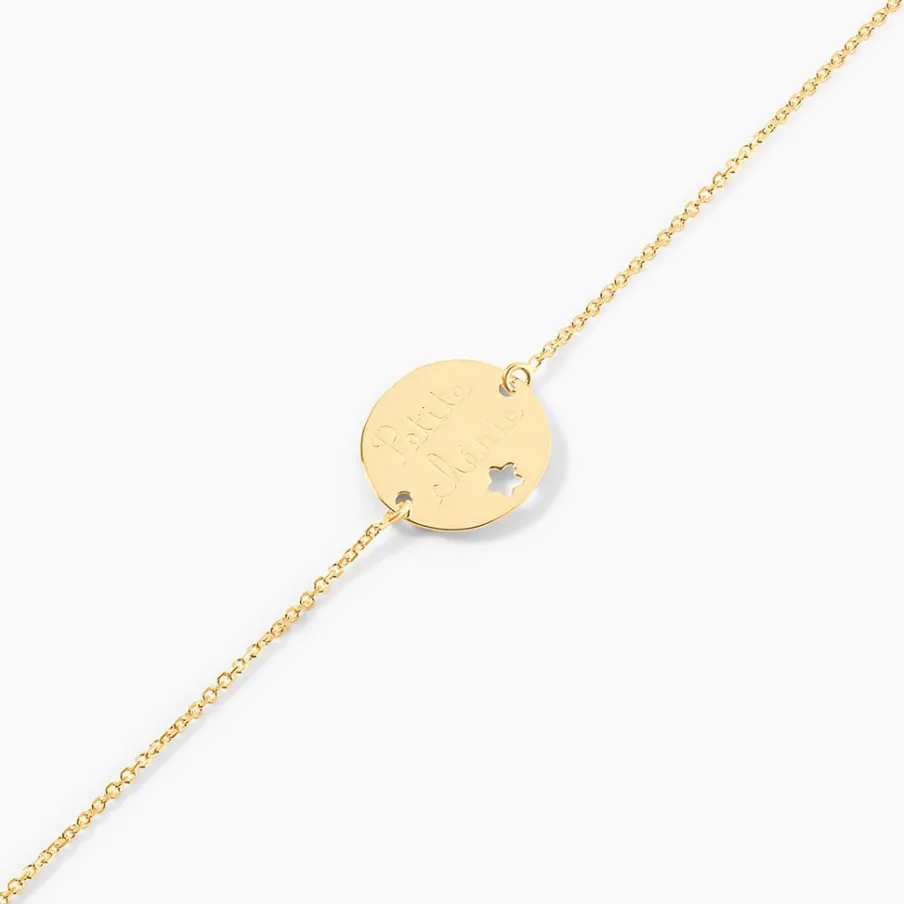 Bracelet Or Jaune 375/1000 Pastille Message Petite Cherie Maille Jaseron 14cm