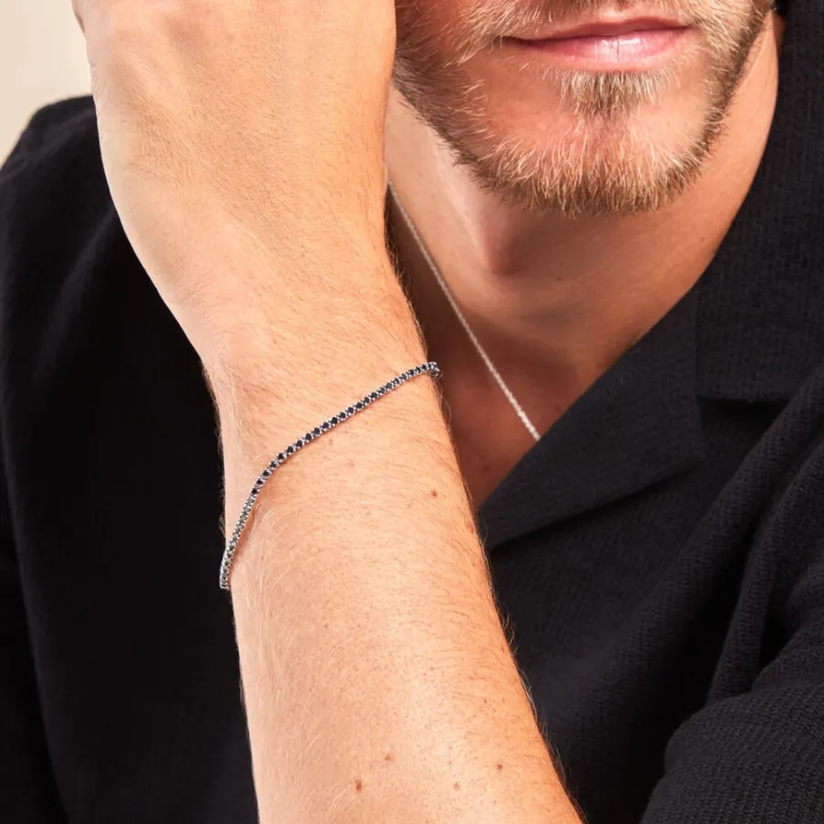 Bracelet Or Blanc 375/1000 Riviere Diamants Noirs 2.22cts Micro Serti 19cm