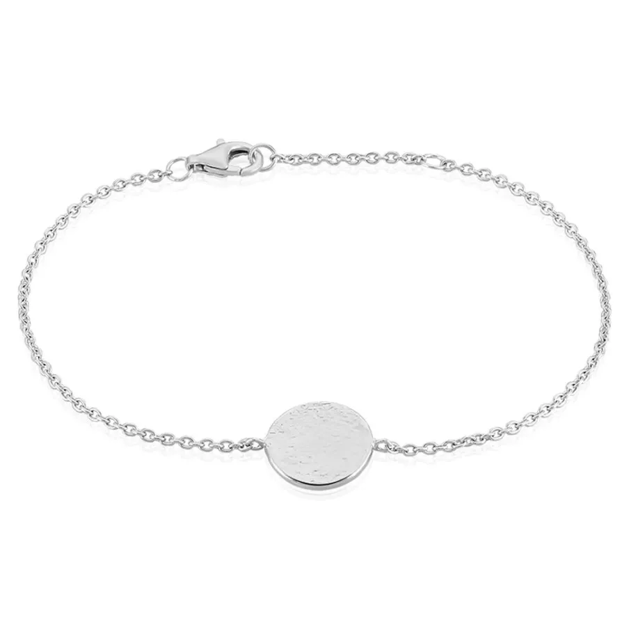 Bracelet Argent Blanc 925/1000 Pastille Effet Martele Maille Forcat 18cm