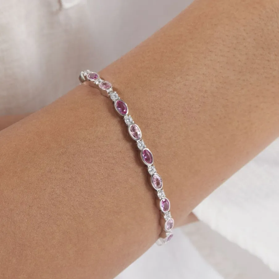 Bracelet Argent 925/1000 Oxydes De Zirconium Alternance Roses Sertis Clos 19cm