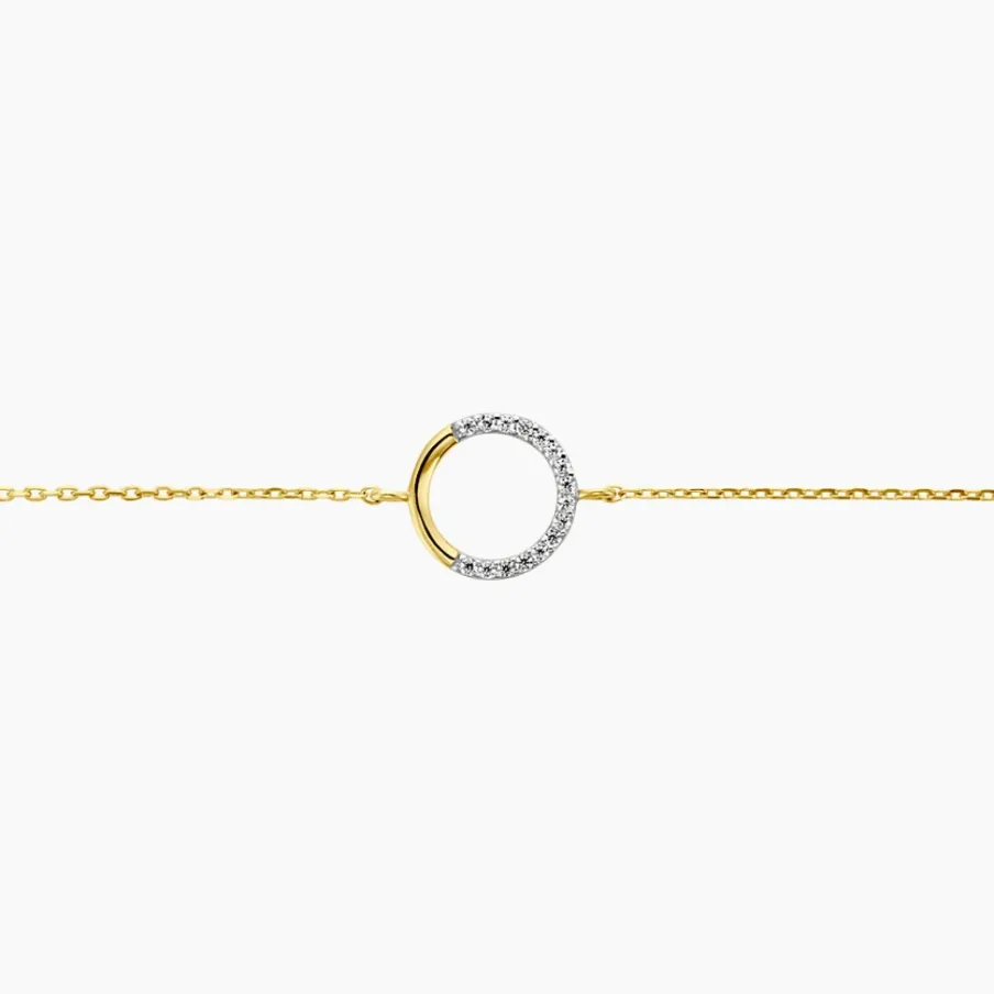 Bracelet Or Jaune 375/1000 Cercle Oxyde De Zirconium Serti Pavage Maille Forcat 18cm