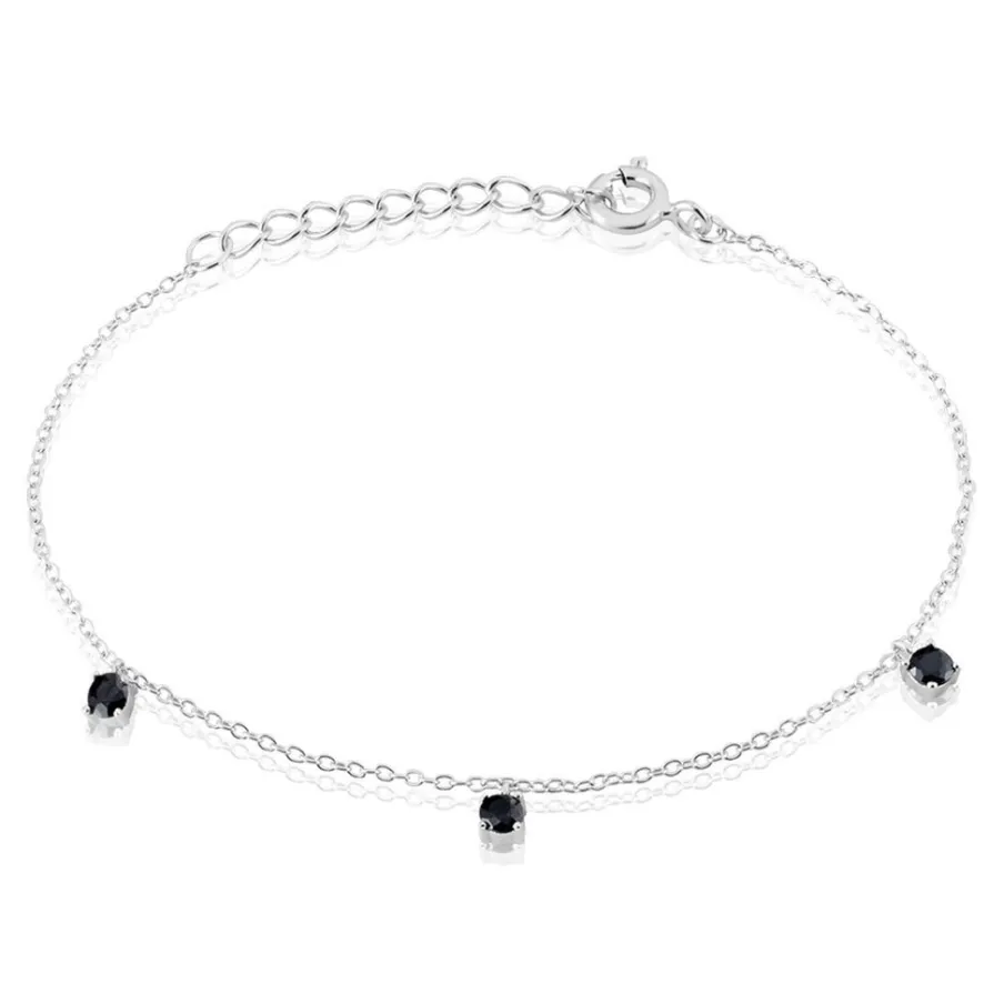 Bracelet Argent 925/1000 Oxyde De Zirconium Noir Serti 4 Griffes Maille Forçat 19cm