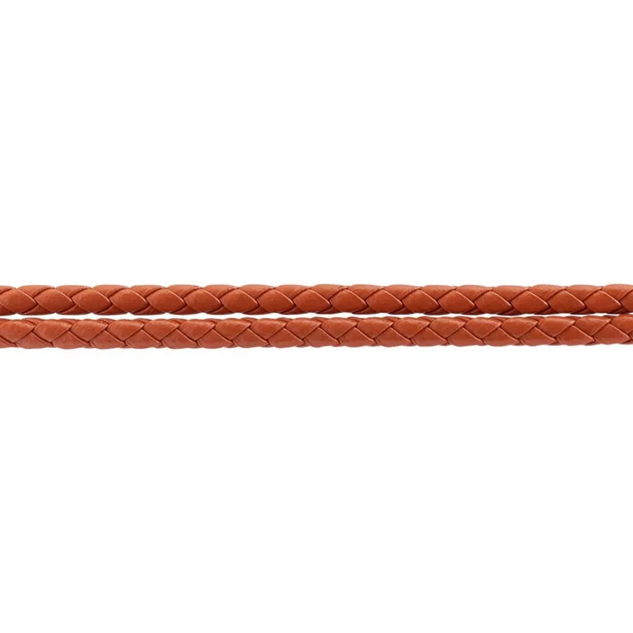 Bracelet Acier Inoxydable Blanc Cuir Orange Double Tours 42cm