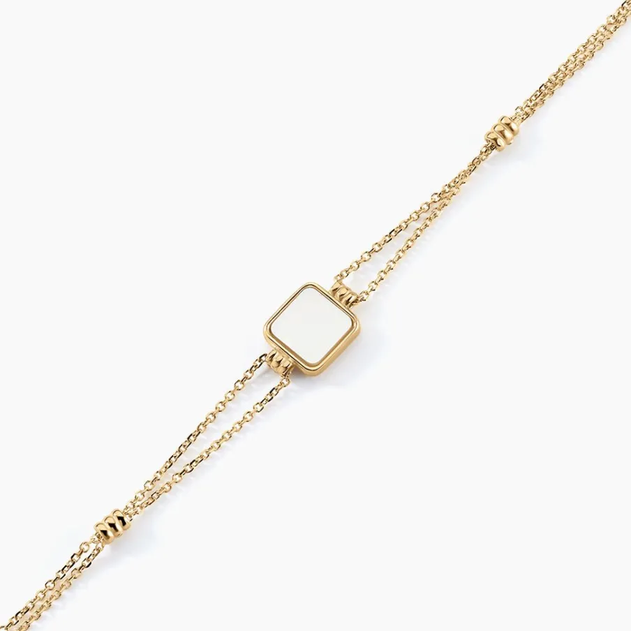 Bracelet Or Jaune 375/1000 Carre Nacre Blanche Serti Clos Maille Jaseron 16+2cm