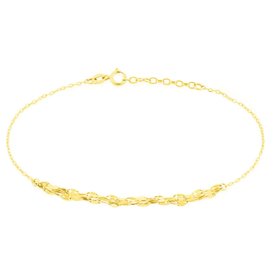 Bracelet Or Jaune 375/1000 Triple Chaines Maille Lumina 21cm
