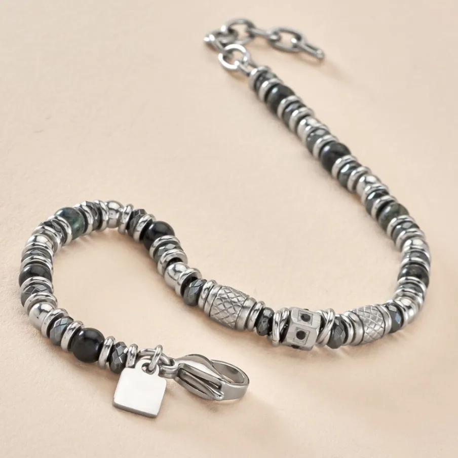 Bracelet Acier Inoxydable Gris Labradorite Grise Largeur 4.4mm 21cm