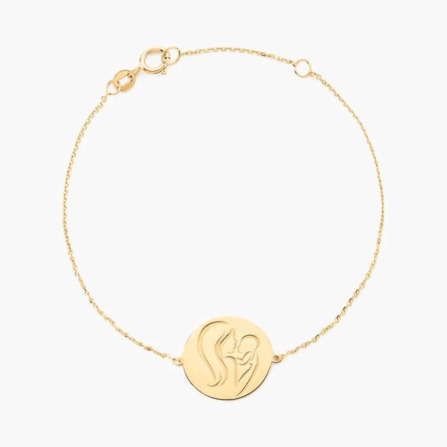 Bracelet Or Jaune 375/1000 Pastille Motif Maman Et Enfant Maille Forçat 18cm