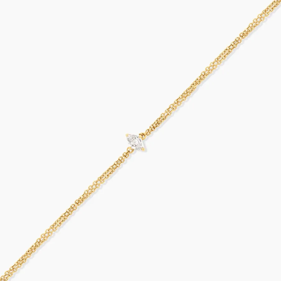Bracelet Or Jaune 750/1000 Solitaire Losange Diamant Synthetique 0,20Cts Serti Griffes Double Maille Forcat 16+2Cm