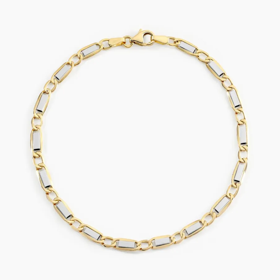 Bracelet Or Bicolore 375/1000 Maille Plaquette Alternée 1/1 4.7mm 21cm