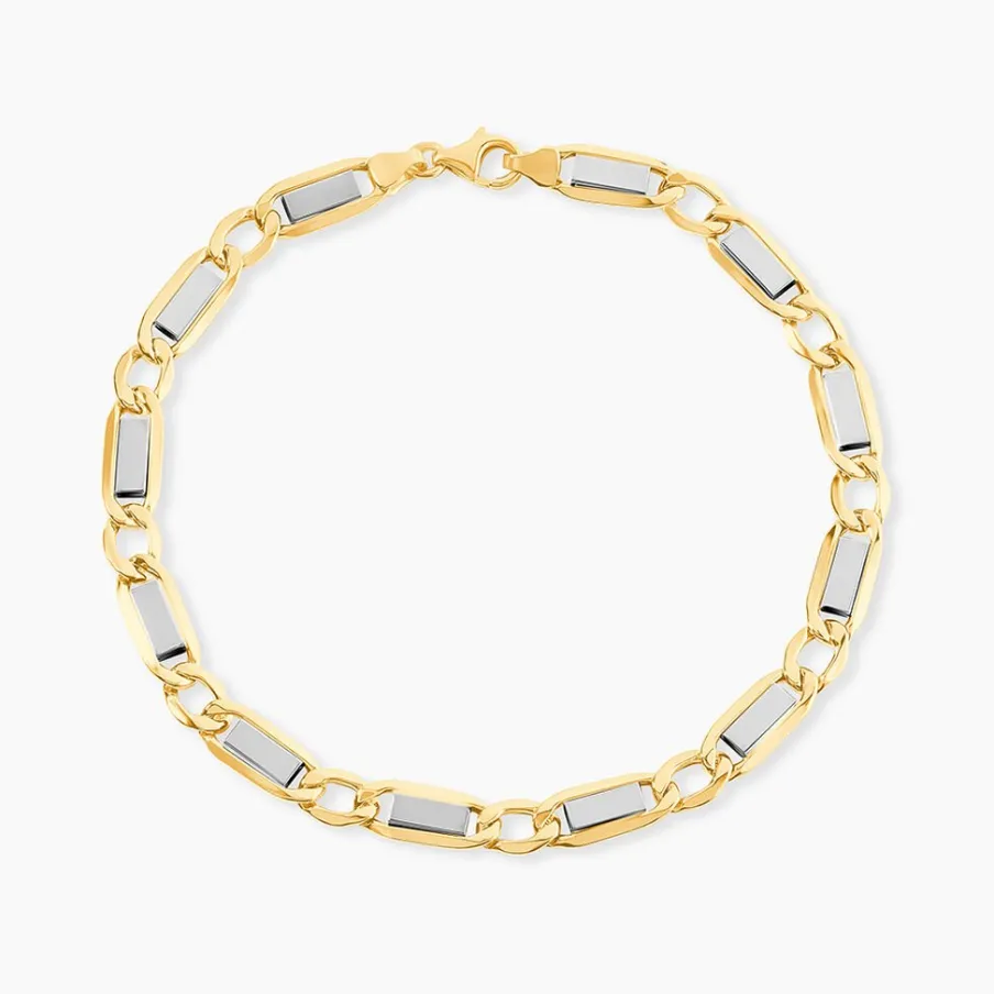 Bracelet Or Bicolore 375/1000 Maille Plaquette 5.6mm 21cm