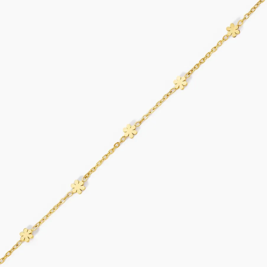 Bracelet Acier Inoxydable Jaune Motif Fleurs Maille Forçat Longueur 16+3cm