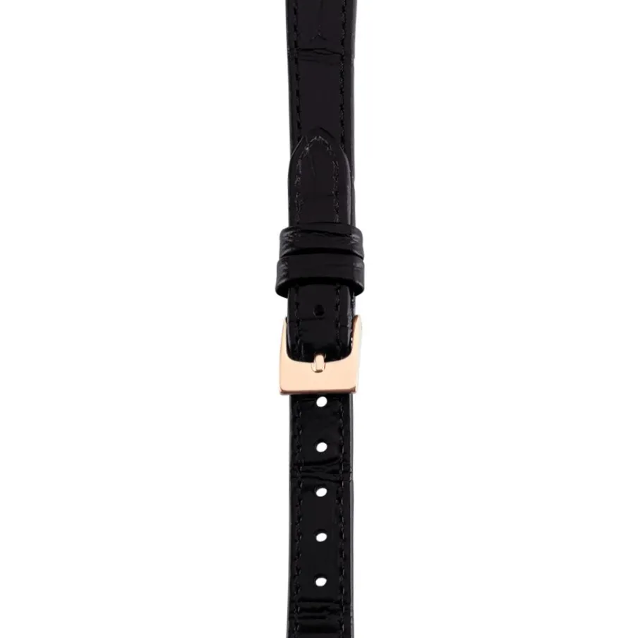 Bracelet De Montre Belton Cuir Alligator Noir Boucle Rose 12mm