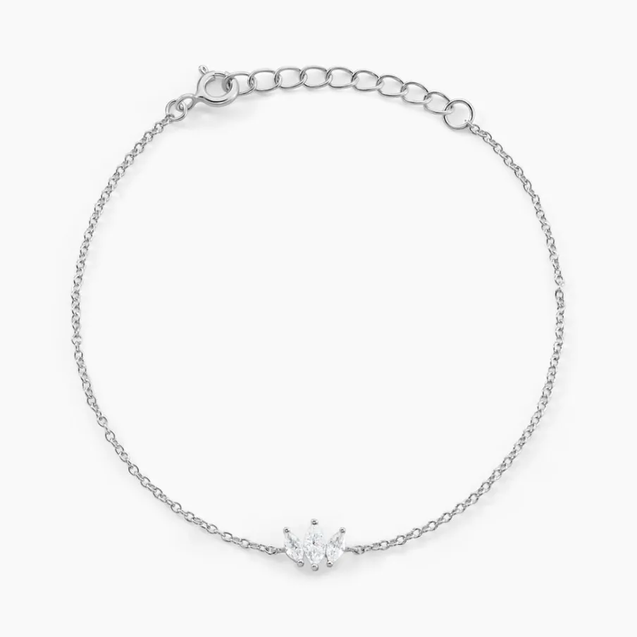 Bracelet Argent Blanc 925/1000 Navettes Oxydes De Zirconium Serti Griffes Maille Jaseron 16+3cm