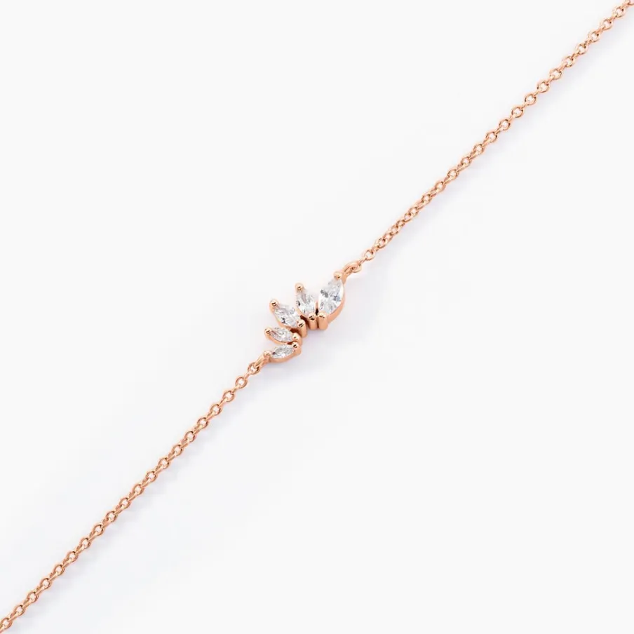 Bracelet Argent Rose 925/1000 Navettes Oxydes De Zirconium Serti Griffes Maille Forçat 16+3cm
