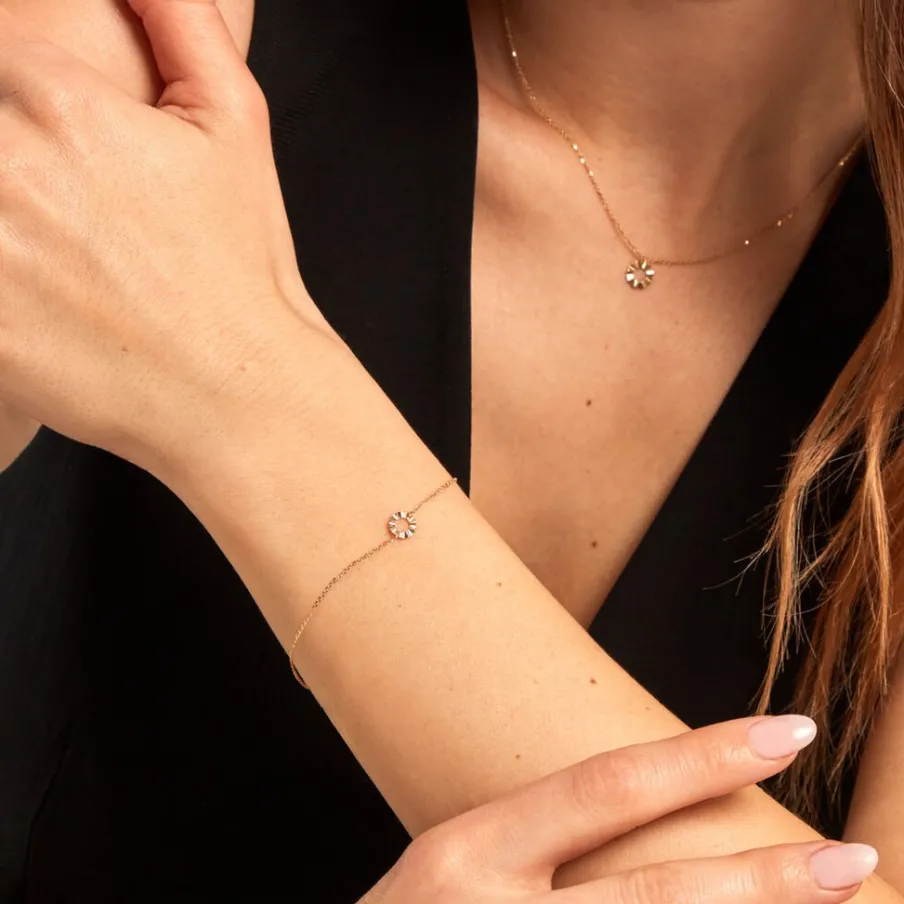 Bracelet Or Jaune 375/1000 Cercle Ajoure Froisse Maille Jaseron 16+2cm