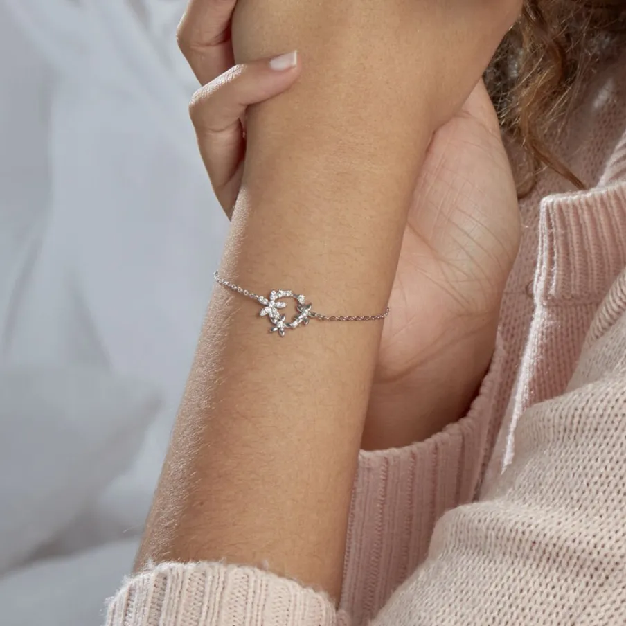 Bracelet Argent 925/1000 elinia Cercle Motifs Fleurs Semi Pavage Oxydes De Zirconium 18cm