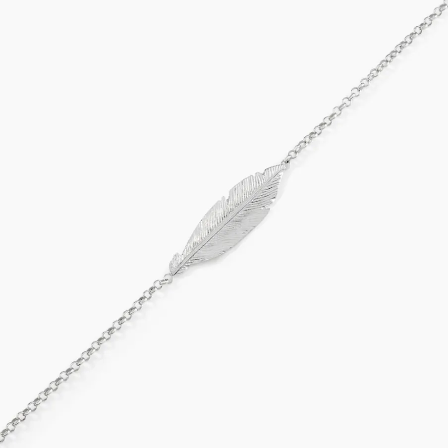 Bracelet Argent Blanc 925/1000 Plume Maille Forcat 19cm