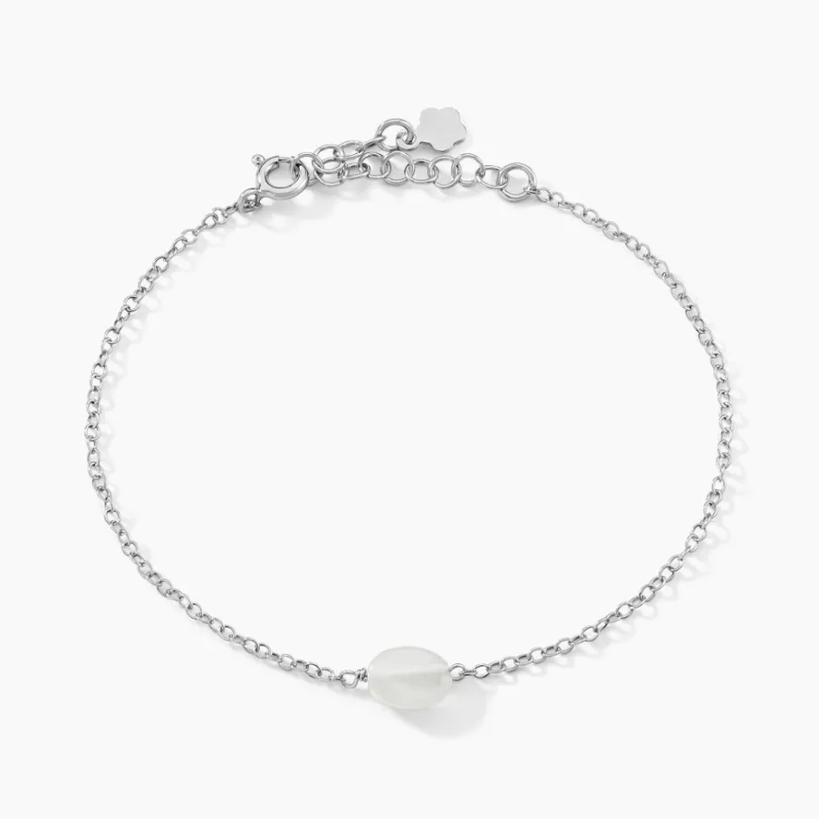 Bracelet Argent Blanc 925/1000 Pierre Oeil De Chat Blanche Ovale Maille Forcat 19cm