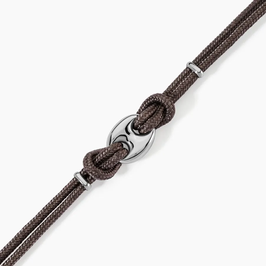 Bracelet Acier Inoxydable Blanc Grain Cafe Acier Inoxydable Blanc Et Cordons Marrons 21cm
