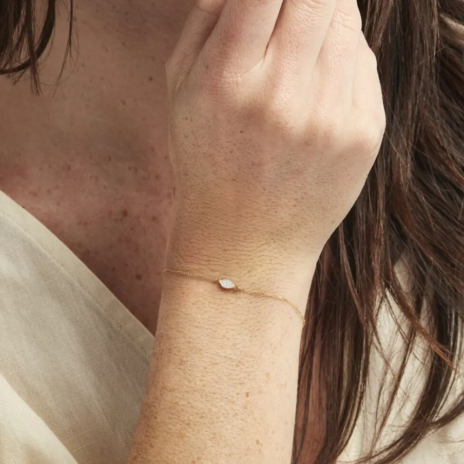 Bracelet Or Jaune 375/1000 Amande Glitter Argente Maille Jaseron 16+2cm