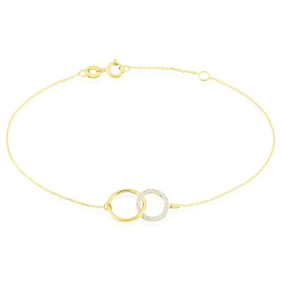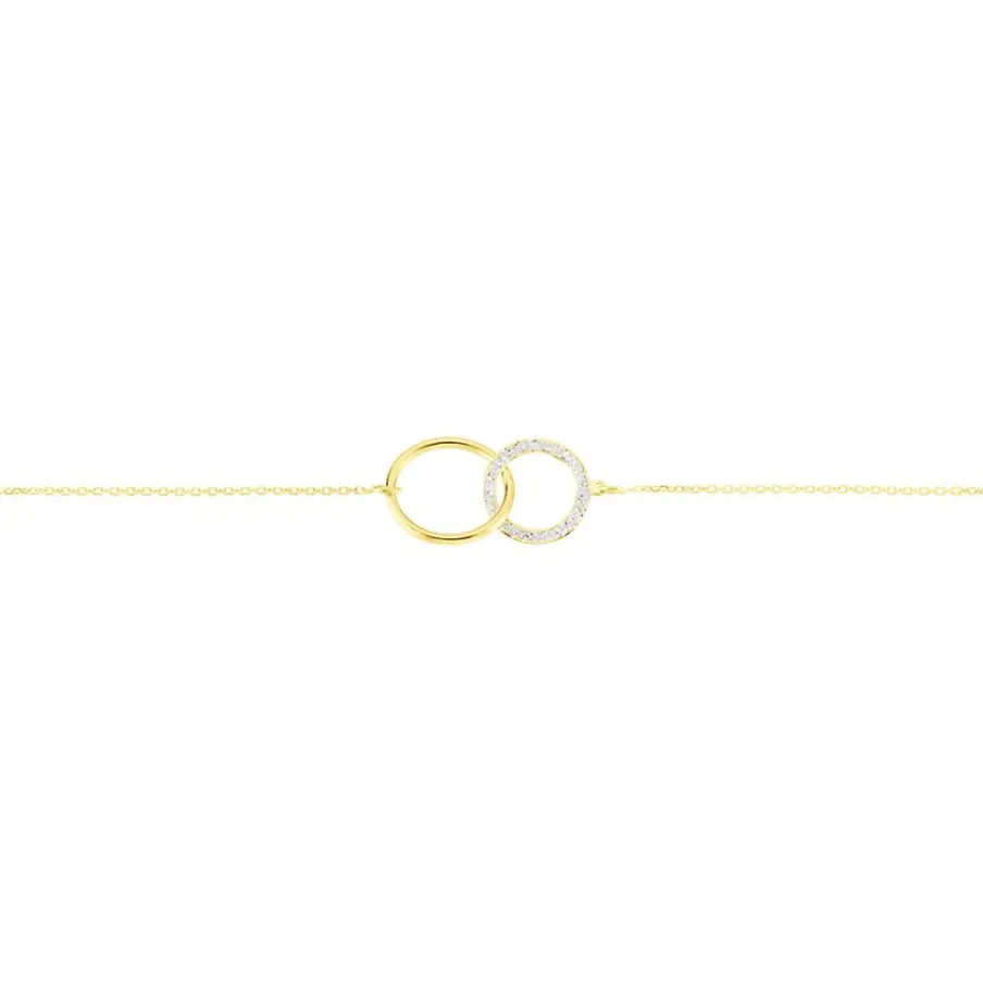 Bracelet Or Jaune 375/1000 Double Cercles Dont Un Cercle Glitter Argente Maille Jaseron 16+2cm