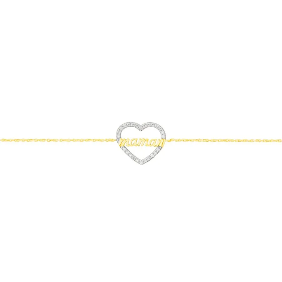 Bracelet Or Jaune 375/1000 C艙ur Et Message Maman Oxydes De Zirconium 19cm