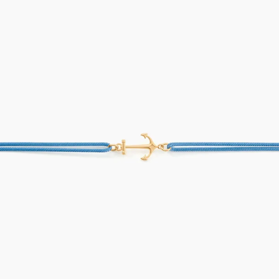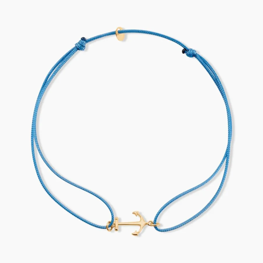 Bracelet Or Jaune 375/1000 Ancre Sur Cordon Ajustable Nylon Bleu
