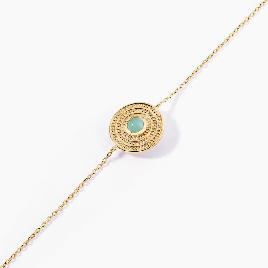 Bracelet Plaque Or Jaune Rond Aventurine Verte Maille Forcat 18cm