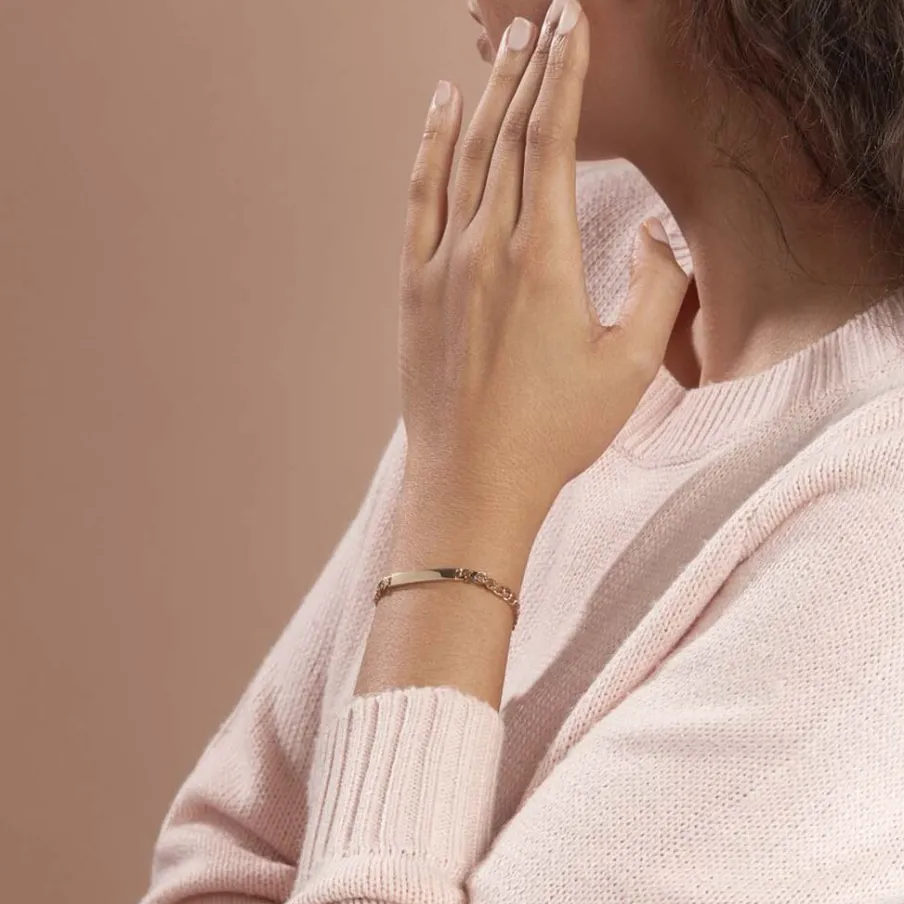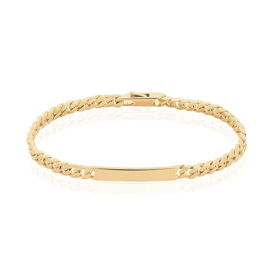 Bracelet Identite Plaqué Or Jaune Maille Gourmette Diamantee 4mm 18cm