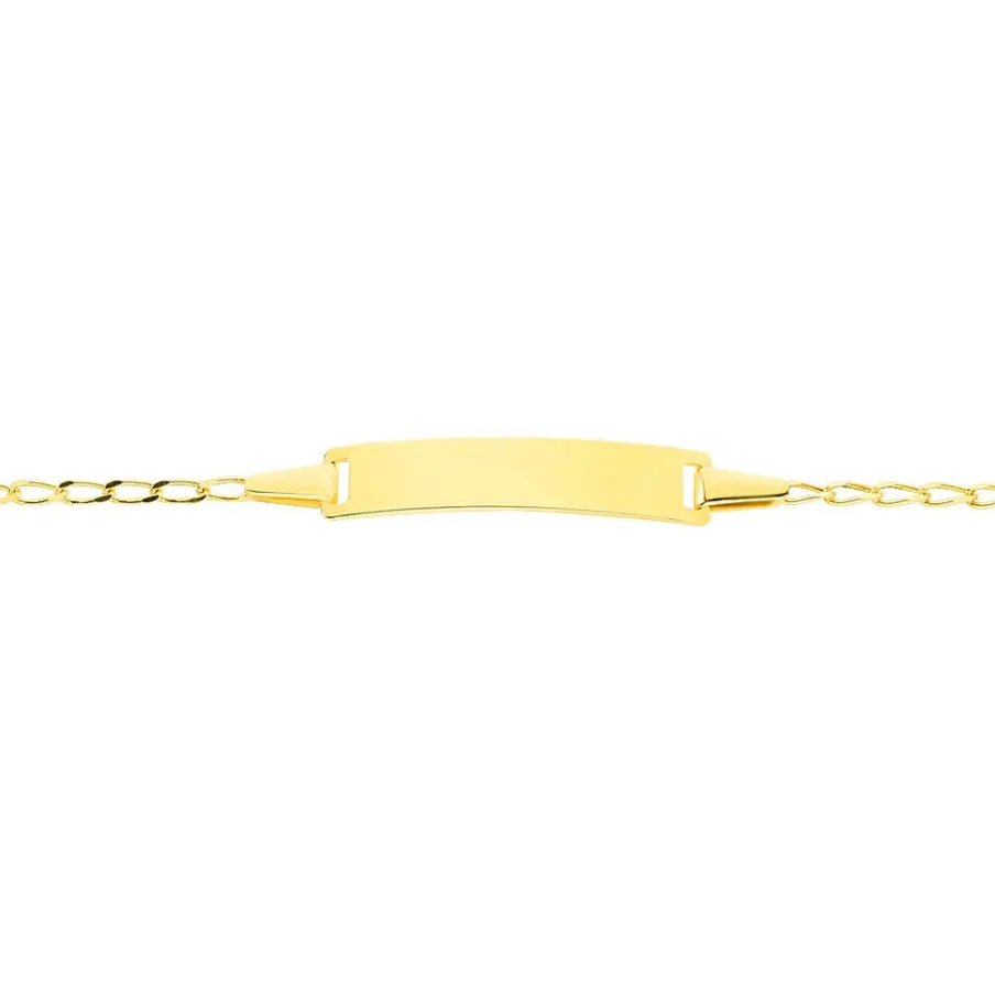 Bracelet Identite Bebe Or Jaune 375/1000 Plaque Rectangle Maille Cheval 14cm