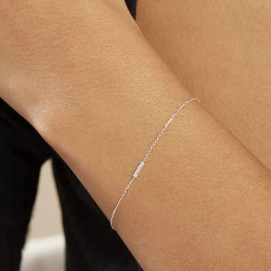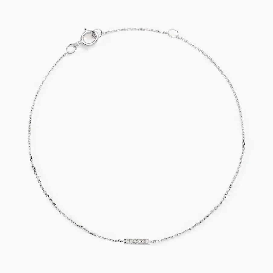 Bracelet Or Blanc 375/1000 Forme Barrette Diamants 16+2cm