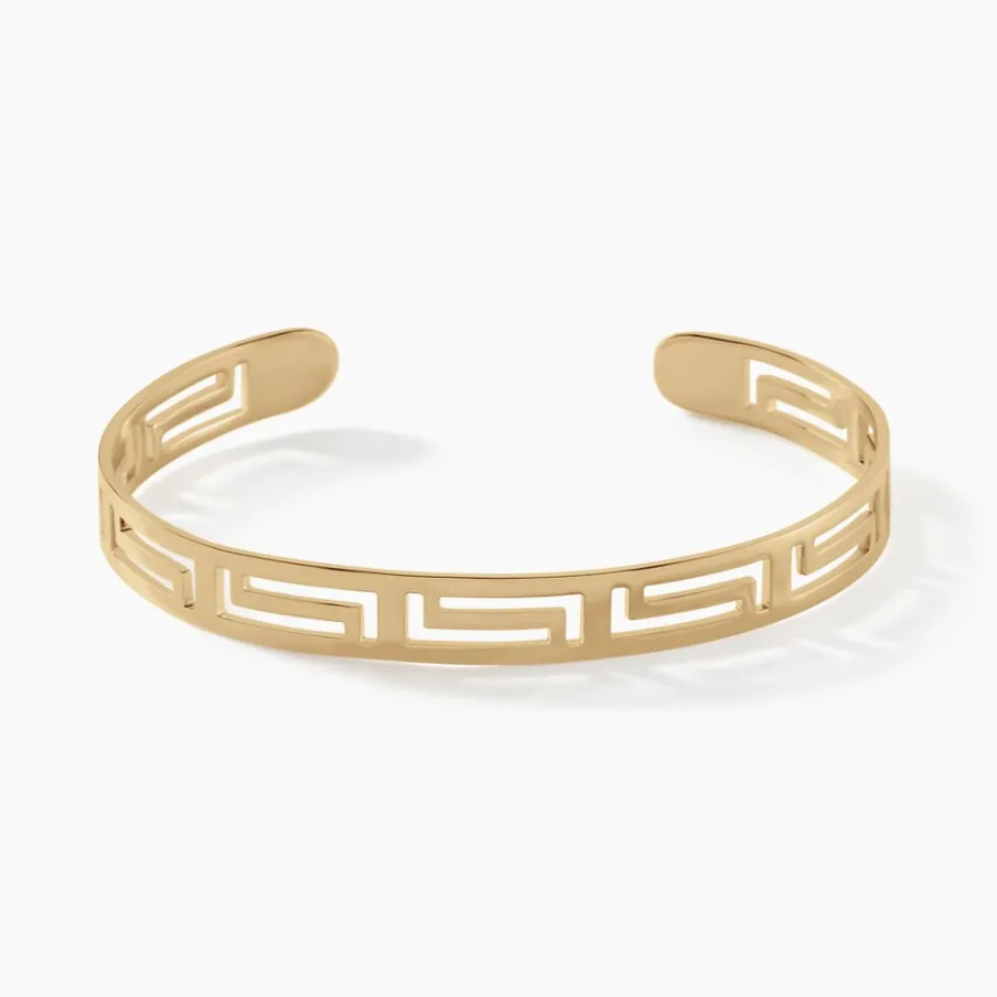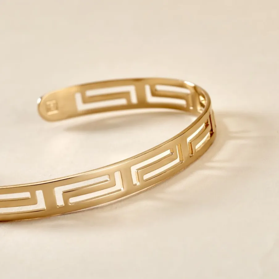 Bracelet Jonc Plaqué Or Jaune Motif Grec Ajoure Diametre 63mm