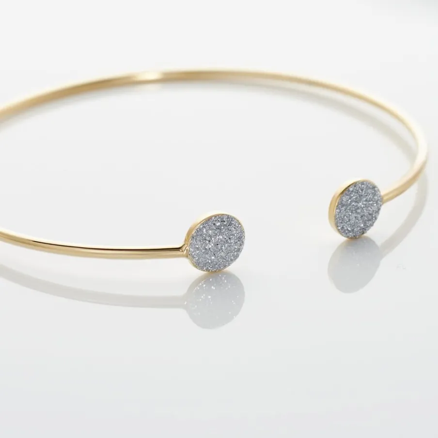 Bracelet Jonc Or Jaune 375/1000 Double Pastilles Glitter Argente