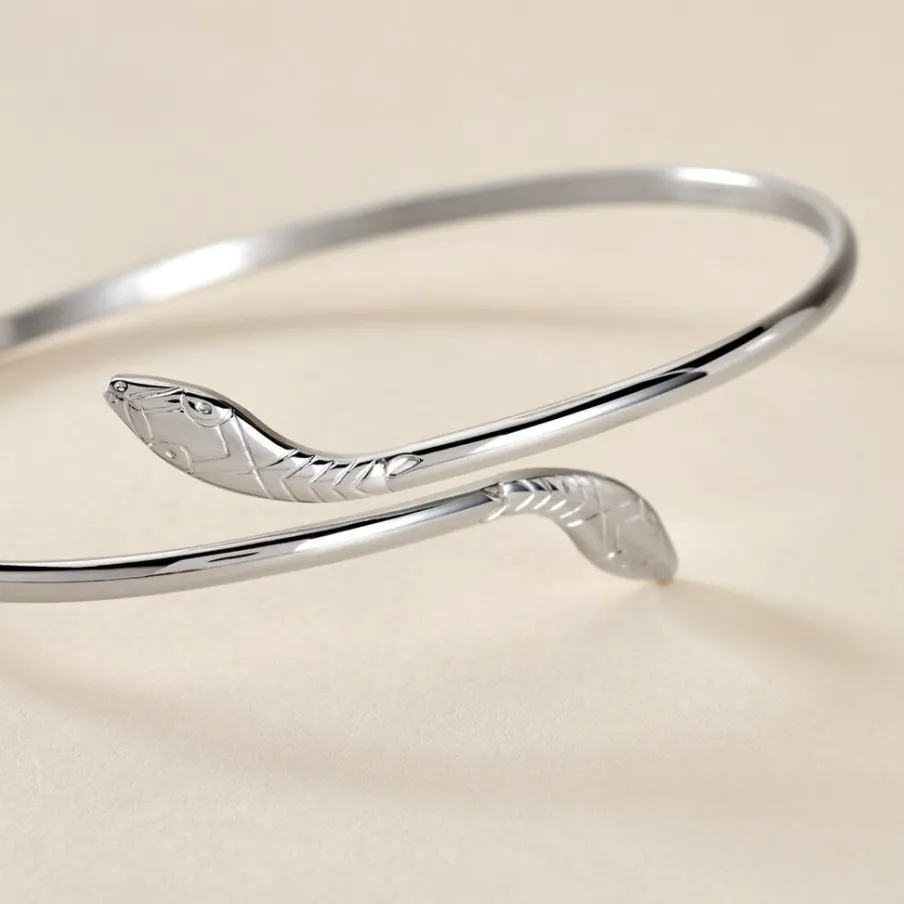Bracelet Jonc Argent Blanc 925/1000 Serpent Diametre 65mm