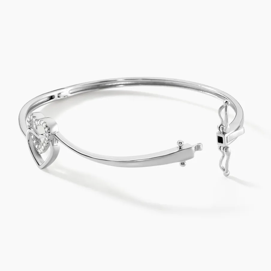 Bracelet Jonc Argent 925/1000 veronike 1 Coeur Ajoure Oxydes De Zirconium + 1 Coeur Ajoure Tout Argent 5.8cm/5cm