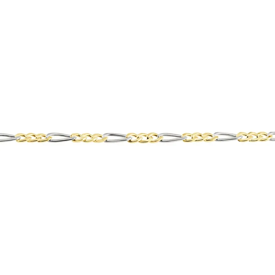 Bracelet Maille Or Bicolore Jaune Et Blanc 750/1000 Maille Alternee 1/3 Largeur 2.2mm 20cm