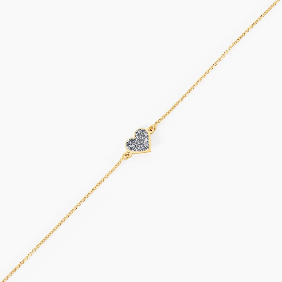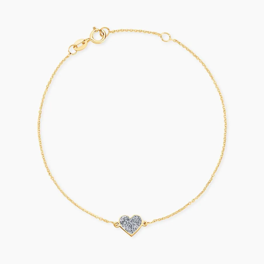 Bracelet Or Jaune 375/1000 Coeur Glitter Argente Maille Jaseron 16+2cm