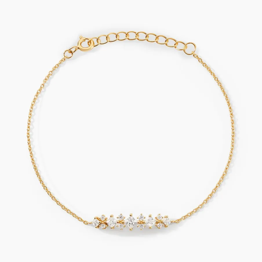 Bracelet Argent Jaune 925/1000 Oxydes De Zirconium Carres 16+3cm