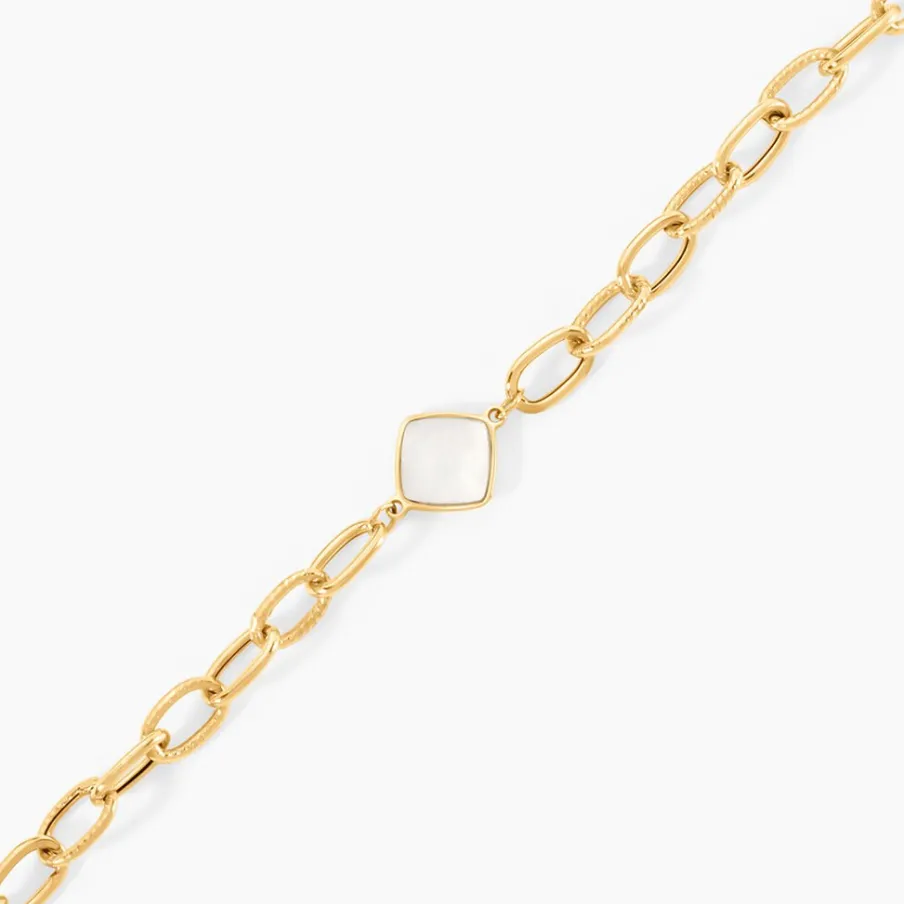 Bracelet Or Jaune 375/1000 Carre Nacre Maille Forcat Largeur 4,5Mm Longueur 16+2Cm