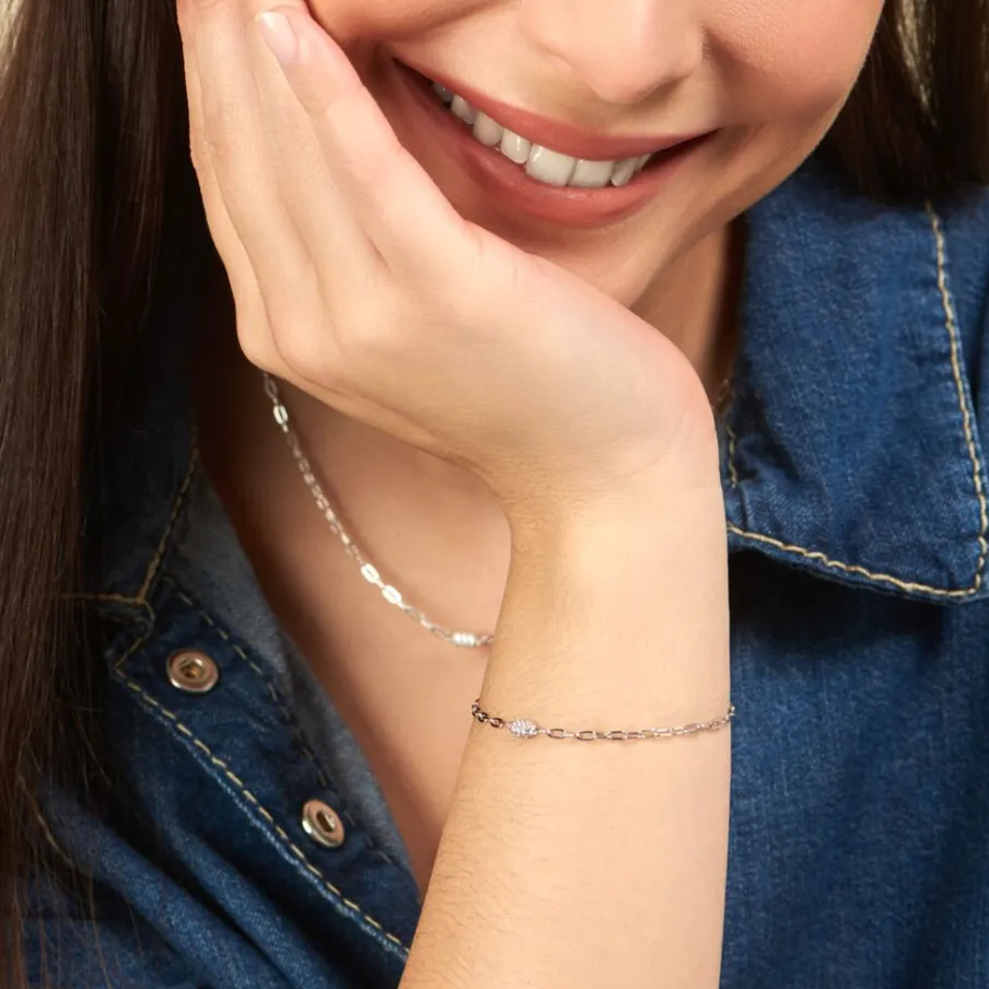 Bracelet Argent 925/1000 nexus Talisman Oxydes De Zirconium Maille Forçat épaisse 16+3cm