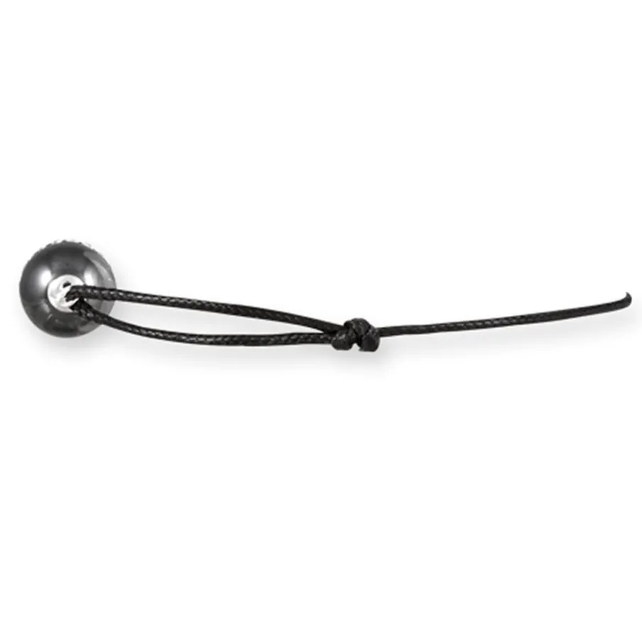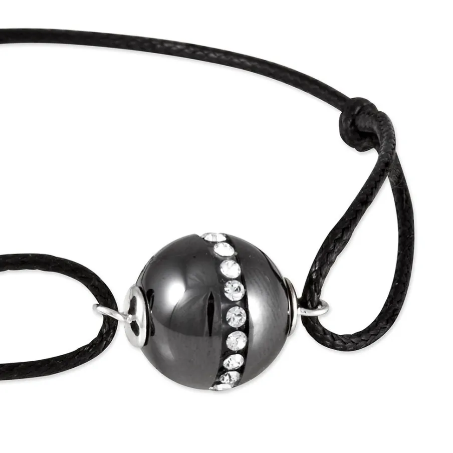 Bracelet Argent 925/1000 Boule Ceramique Noire Lisse Pierres Blanches Sur Cordon Noir