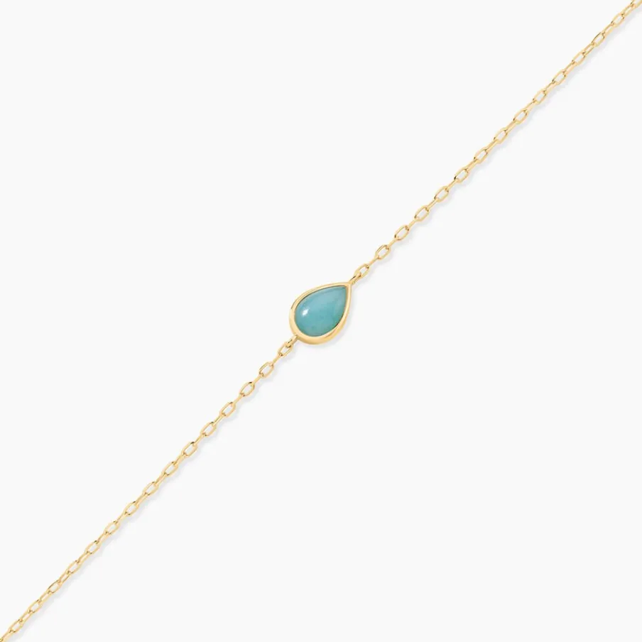 Bracelet Or Jaune 375/1000 Goutte Amazonite Turquoise Maille Forcat 16+2Cm